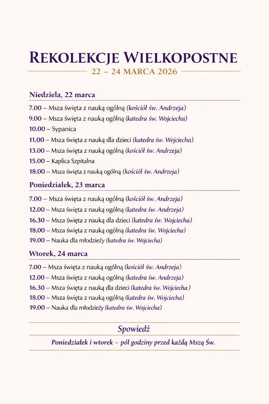 „INTENCJE MSZY ŚWIĘTEJ 16.03. – 22.03.2026 r.”